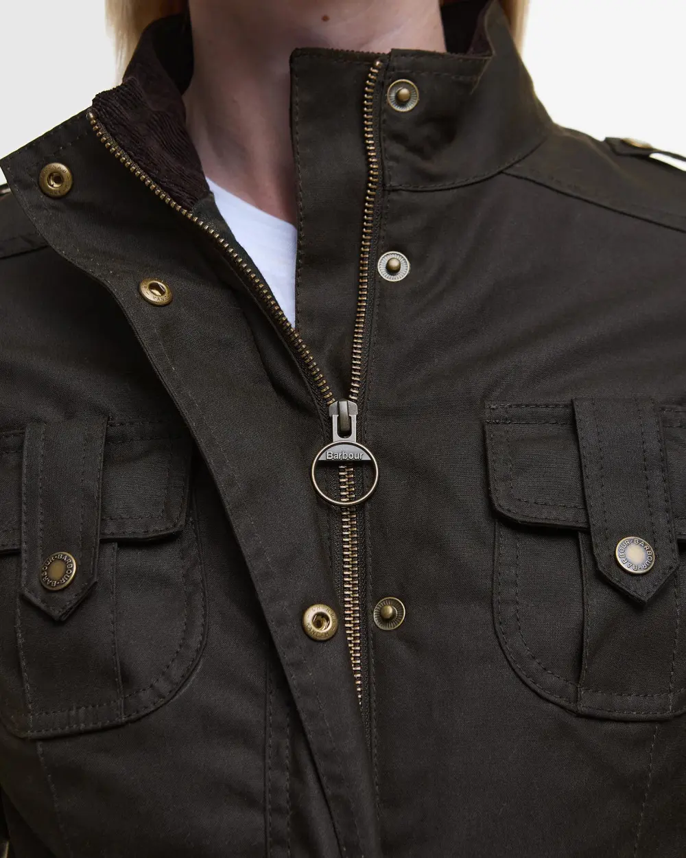 Klassiske Defence-voksjakke er fremstillet i kraftig vokset bomuld og foret med et varmt inderfor, der beskytter mod kulden. Jakken er designet med skulderstropper (epauletter) og fire praktiske lommer med trykknaplukning. Inderforet prydes af det karakteristiske tartan-mønster.