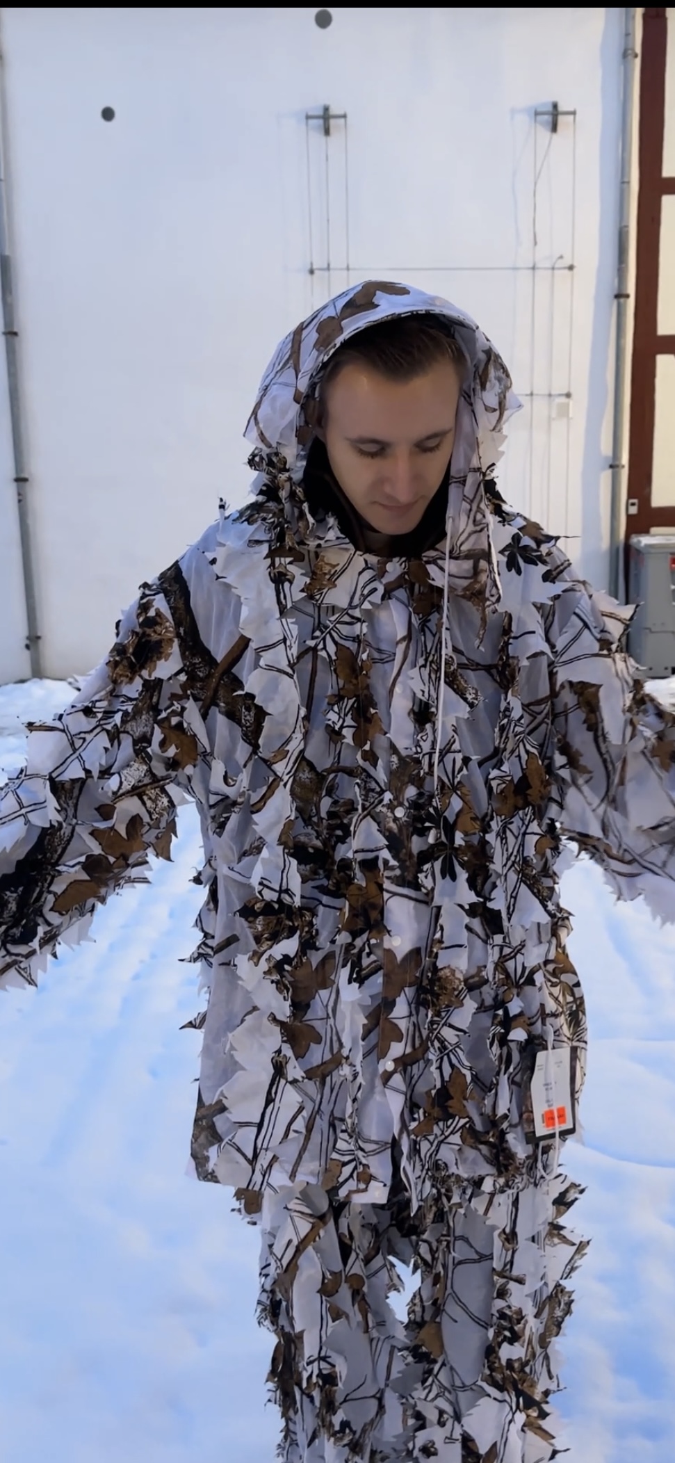 Deerhunter Winter overtræks sæt i hvid camoflage. Sættet er med elastik i taljen og en hætte, som kan indstilles.