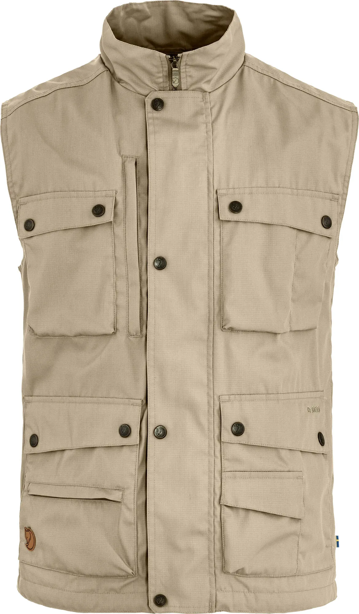 Praktisk vest i G-1000 med netfor. Klassisk "reportermodel" med mange smarte lommer, blandt andet håndlommer med åbning fra to sider. Lavet uden PFAS.